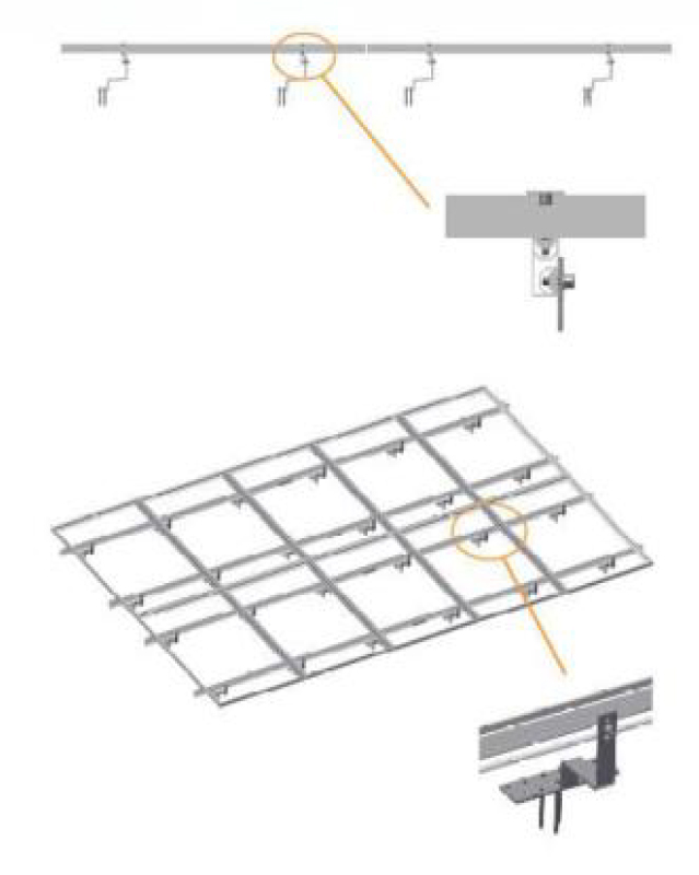 傳統琉璃瓦光伏支架安裝類型: 安裝特點: A. 直接將屋頂掛鉤固定在 琉璃瓦下方的木梁上; B. 導軌沿不銹鋼掛鉤一側安裝; C. 使用邊壓,中壓固定太陽能板。 產品特點: 1. 現場安裝零件少。產品模塊化設計,零件在工廠已預裝,現場安裝零件只有6個; 2. 安裝工具簡單。標準化程度高,安裝工具簡單、數量少,僅4個; 3. 替換不同的掛鉤可應用于其它形式的瓦屋頂。 產品性能: ●屋頂類型:磚瓦; ●材料:鋁合金6005和不銹鋼304; ●組件類型:邊框或無邊框; ●組件方向:橫放或堅放; ●地貌類型: B,C; ●設計風速: 45m/s; ●雪載荷:1.4KN/m2。 |